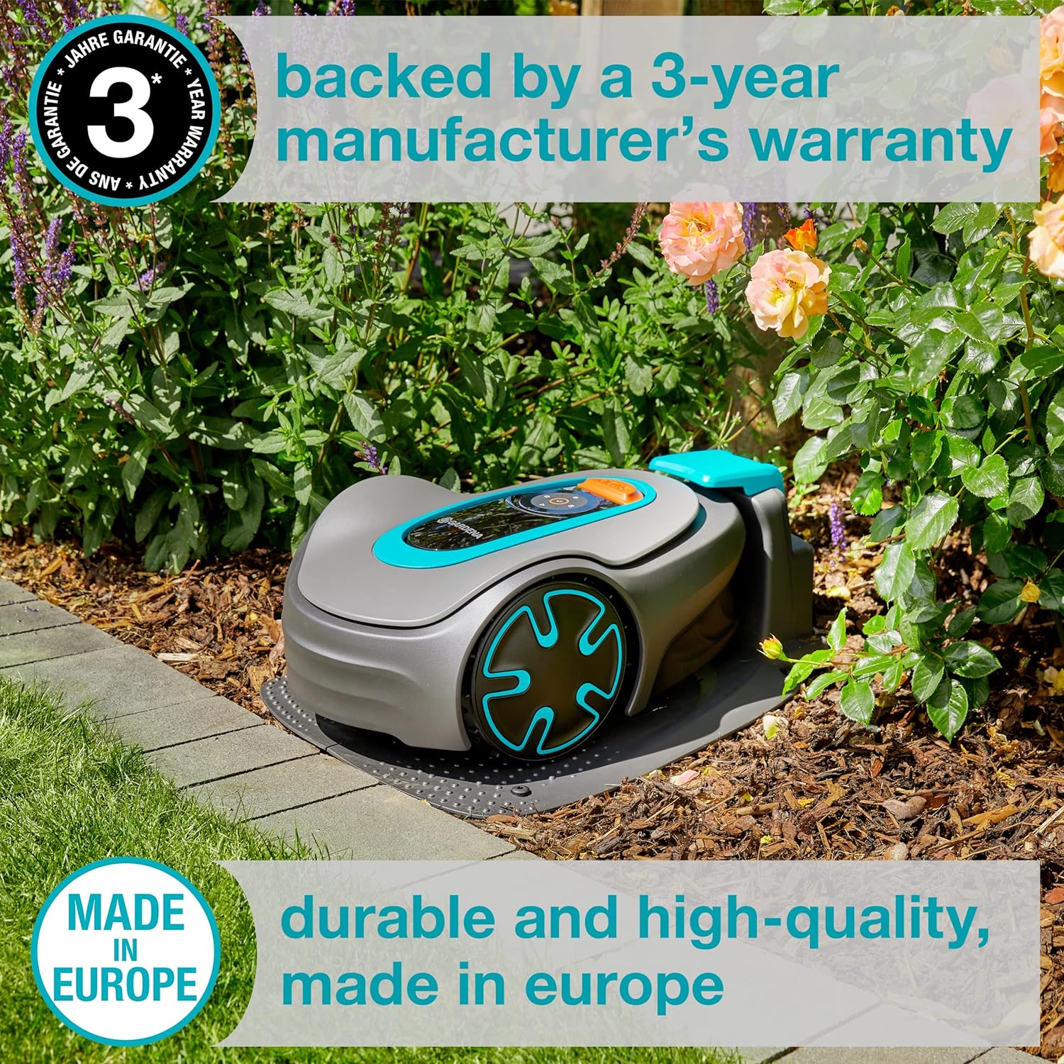 Automatic Robotic Lawn Mower, with Bluetooth app and Boundary Wire, The quietest in its Class, for lawns up to 2700 Sq Ft, Made in Europe, Grey